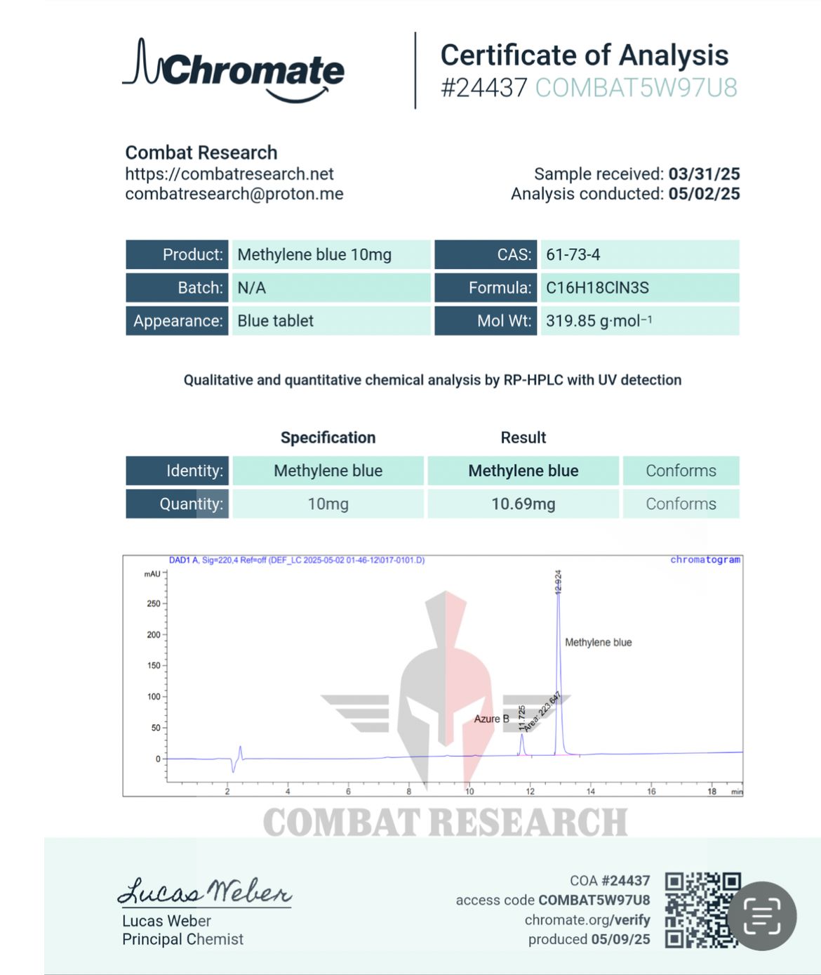 Methylene Blue is FDA-approved only for certain medical uses (e.g., methemoglobinemia treatment) but not approved for general supplementation or research use in humans without supervision.